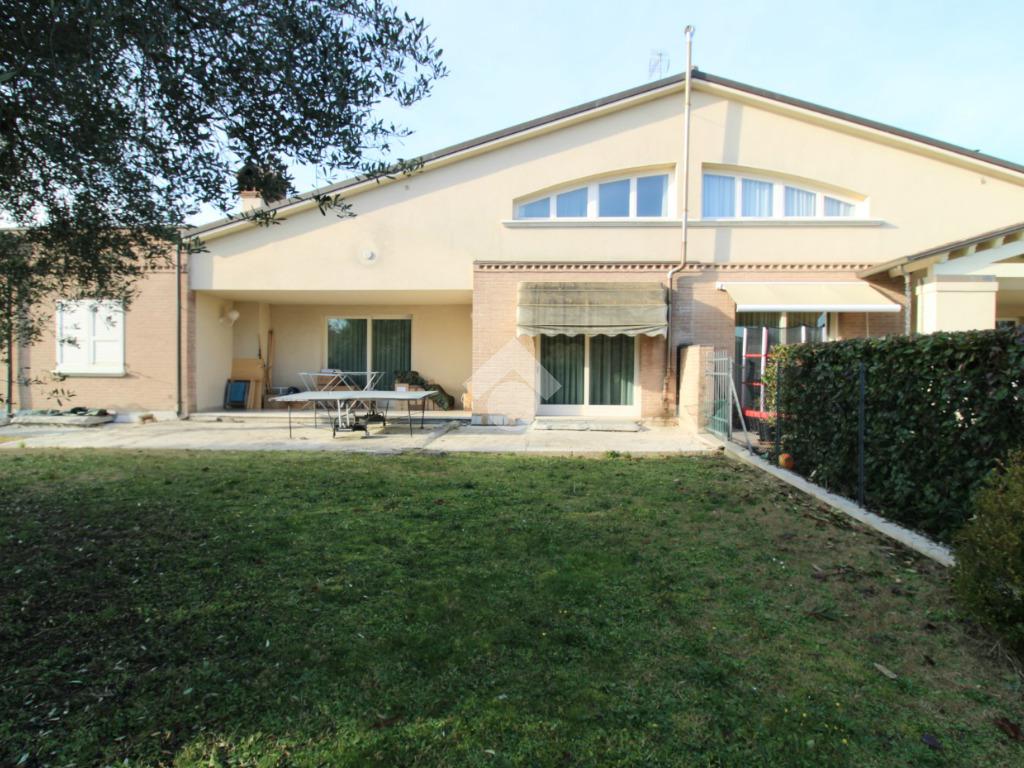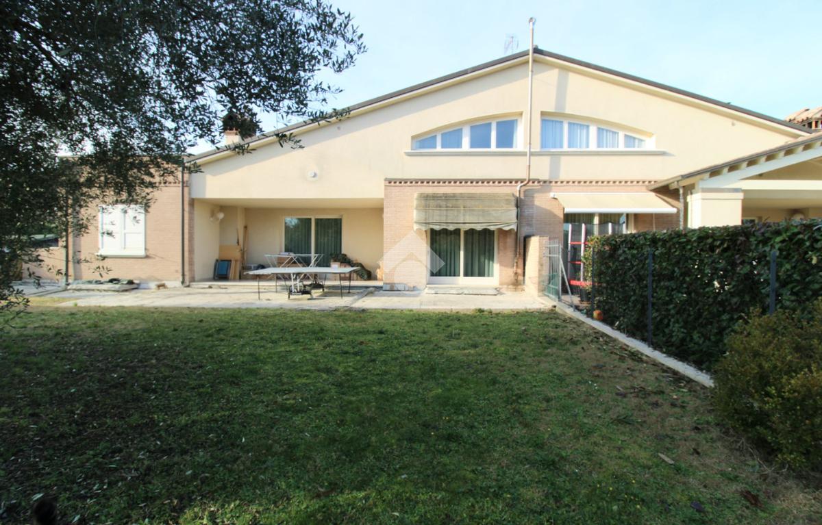 A Villachiaviche di Cesena è disponibile una porzione di bifamiliare in vendita. Questa abitazione, costruita nei primi anni 2000, si estende su più livelli, offrendo ampi spazi e una cura particolare nei dettagli.